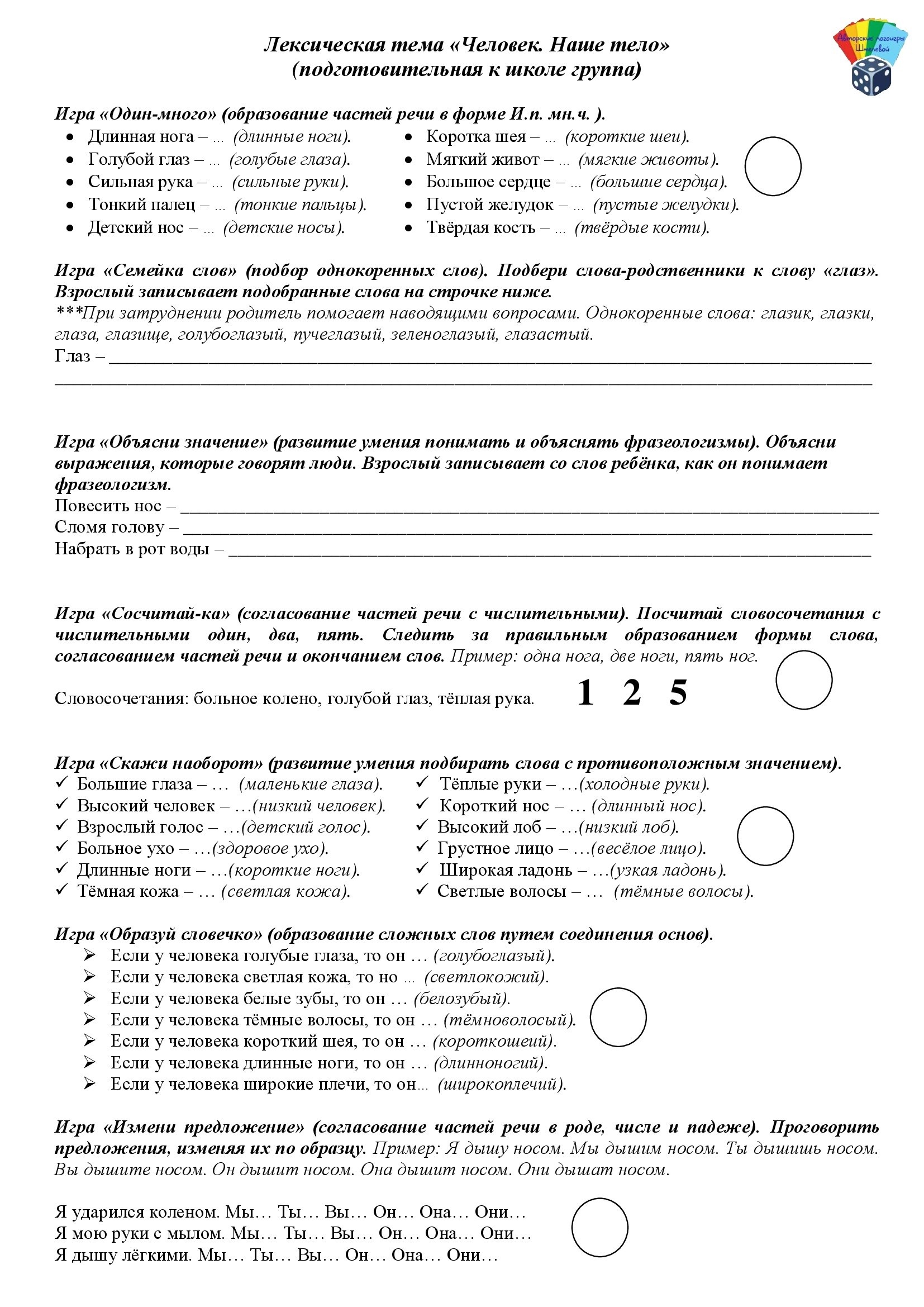 Задания по теме "Человек.Наше тело" 6-7 лет