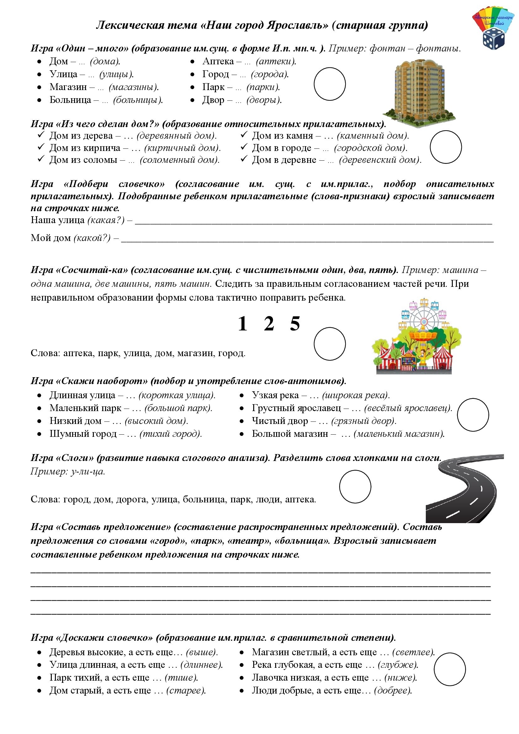 Задания по теме "Наш город Ярославль" 5-6 лет