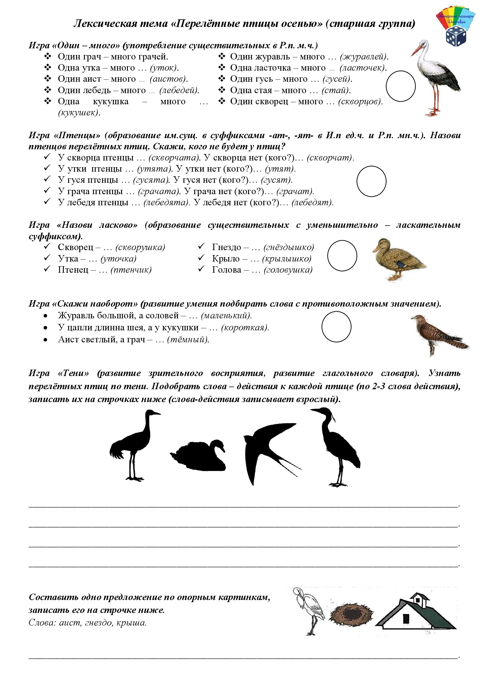 Задания по теме "Перелётные птицы осенью" 5-6 лет