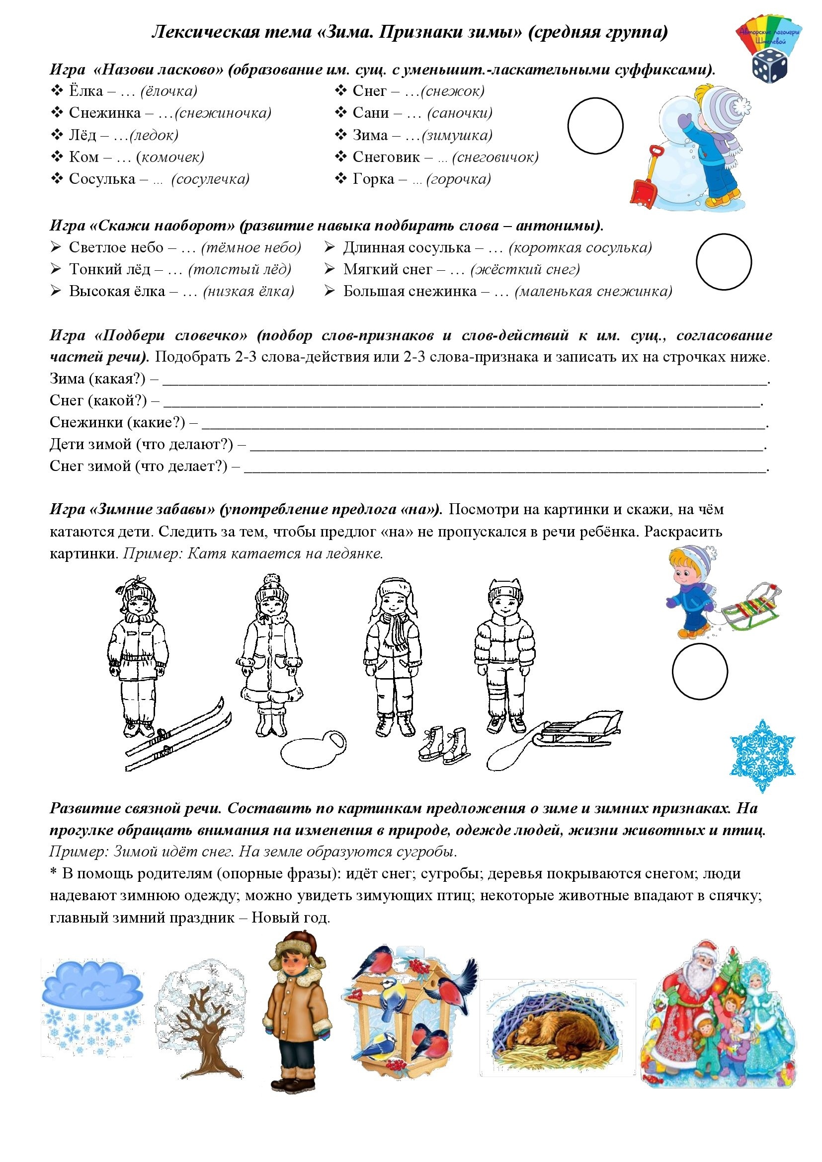 Задания по теме "Зима.Признаки зимы" 4-5 лет