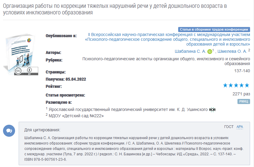 Организация работы по коррекции тяжелых нарушений речи у детей дошкольного возраста в условиях инклюзивного образования